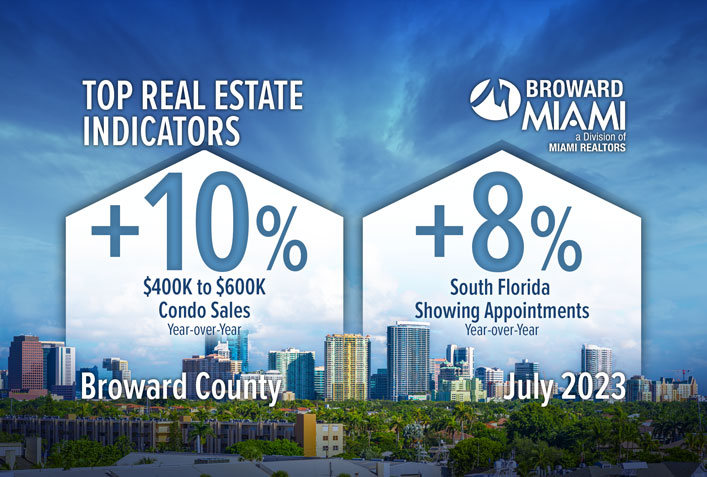 MIAMI — Broward County mid-market condominium sales and total South Florida showing appointments increased year-over-year, according to July 2023 statistics released by the MIAMI Association of Realtors (MIAMI) and the Multiple Listing Service (MLS) system.