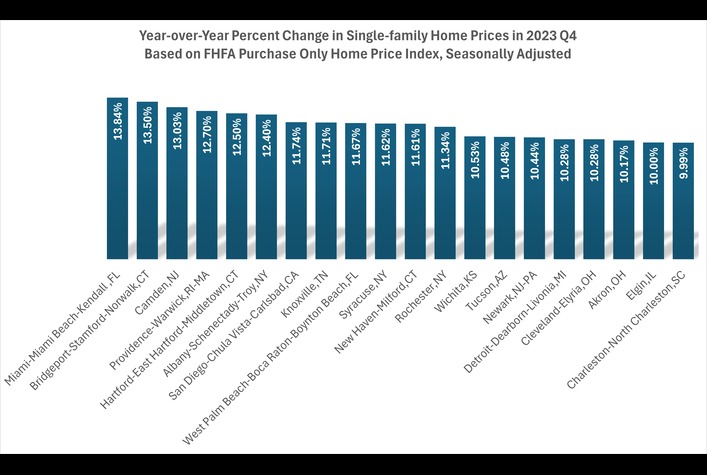 Miami-Miami Beach-Kendall Metropolitan Division Ends 2023 With the Fastest Single-family Price Appreciation Among the Largest 100 Metros