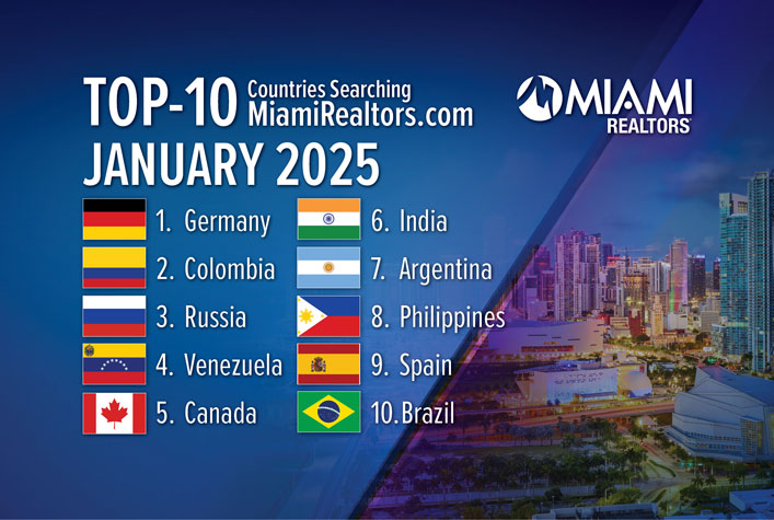 Top 10 Countries Searching MiamiRealtors.com in January 2025: